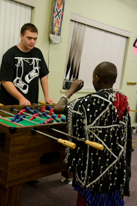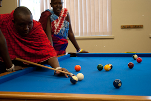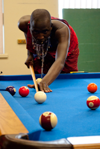 First of all, North Douglas Church has simply been a blessing to us throughout our stay. The facilities here include a gym and a play room. The Maasai were quick to pick up a pool cue and slowly they began picking up the rules as well.