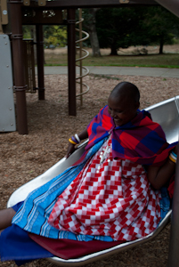 On Thursday evening, Erynn decided that we needed some outside play as well, so we went to a local park. Our intention had not originally been to hang out at the playground, but that is where we ended up anyways. Mathayo went running about. This was his kind of place. Others were a bit more skeptical.