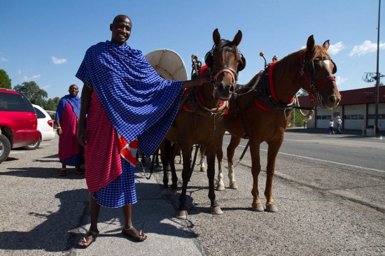 To top off the day, we were granted an audience at the Bandera Courthouse. The judge requested the newspaper to drop in, and even the local radio rocked up. The choir sang in the main hall for the judge and staff members and have been welcomed back on their next tour. As we were leaving we saw an old western style horse cart with donkey and longhorn in tow. The Maasai were very excited to see what was for some, their first horse and the owner welcomed them over to investigate further.